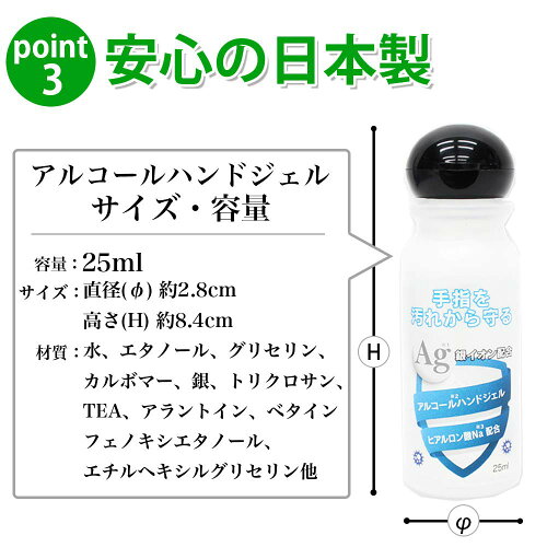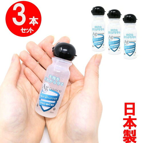 【在庫あり・3個セット】アルコールハンドジェル 日本製 除菌ジェル 25ml 銀イオン配合 ヒアルロン酸Na配合 洗浄 消毒 送料無料 返品不可