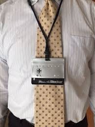 こんなところで使える!『ウイルスエアブロッカー』 導入例 1.通勤・オフィスで使用 身分証と一緒にストラップに取り付け、首から下げたり、胸ポケットにつけたりすることでご利用できます。