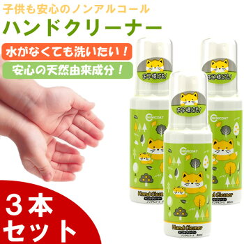 【4/15限定 ポイント最大12倍】あす楽【3本セット】ケミコート ハンドクリーナー 除菌スプレー 抗菌 ノンアルコール 日本製 携帯用 子供 赤ちゃん 手洗い 携帯用 携帯 持ち運び